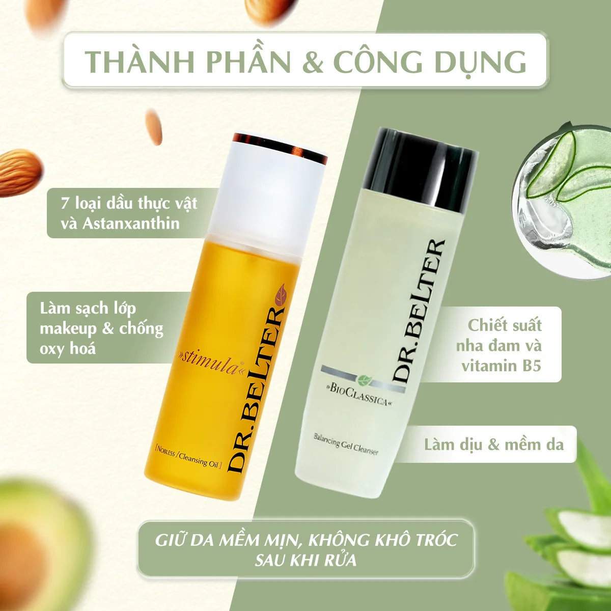 Bộ sản phẩm làm sạch kép, dịu nhẹ Dr.Belter tk1 Gentle cleanse.
