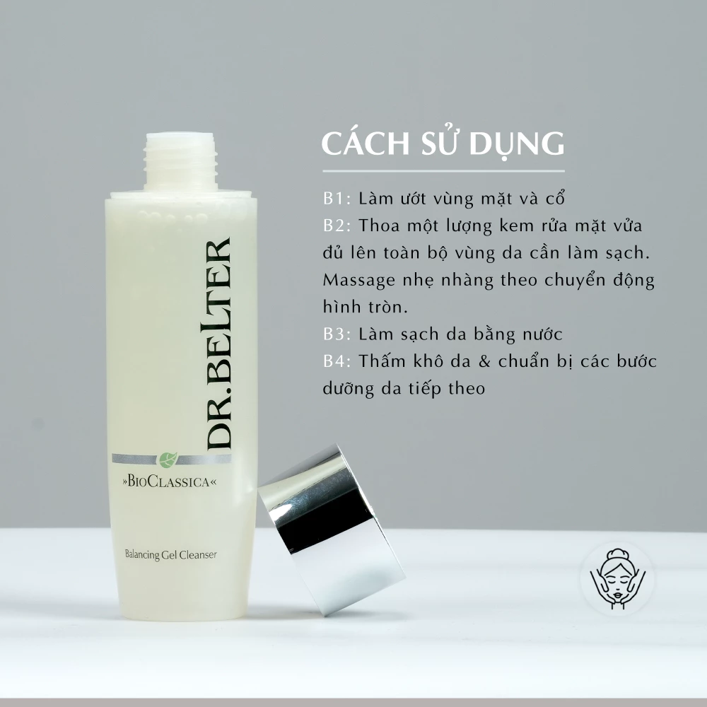 Sử dụng buổi sáng và tối để làm sạch nhẹ nhàng, loại bỏ bụi bẩn và vi khuẩn trên da. Thoa đều đều lên mặt và cổ đã làm ẩm, massage nhẹ nhành theo chuyển động tròn. Rửa sạch kỹ bằng nước ấm. Sử dụng tiếp theo với sản phẩm cân bằng và kem dưỡng của Dr.Belter.